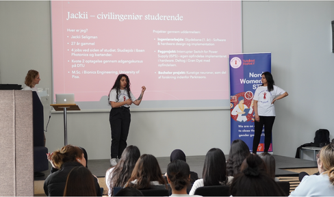 The day started with us giving an introduction to NWiSTEM and ourselves. At the workshop, 3 of our role models were present: Julie, Jackii, and Neha. Julie studies biochemistry at the University of Copenhagen, and she’s been on a semester abroad to Boston University, which allowed her to tell the students about how it has been to study biochemistry and talk about all the great opportunities that exist. Jackii and Neha are both electrical engineering students from the Technical University of Denmark, but Jackii’s studies are more focused on bio robotics, whereas Neha focuses on the electric energy system. Therefore, they told the students about how broad the field is, and how future career options with a degree in electrical engineering are endless.